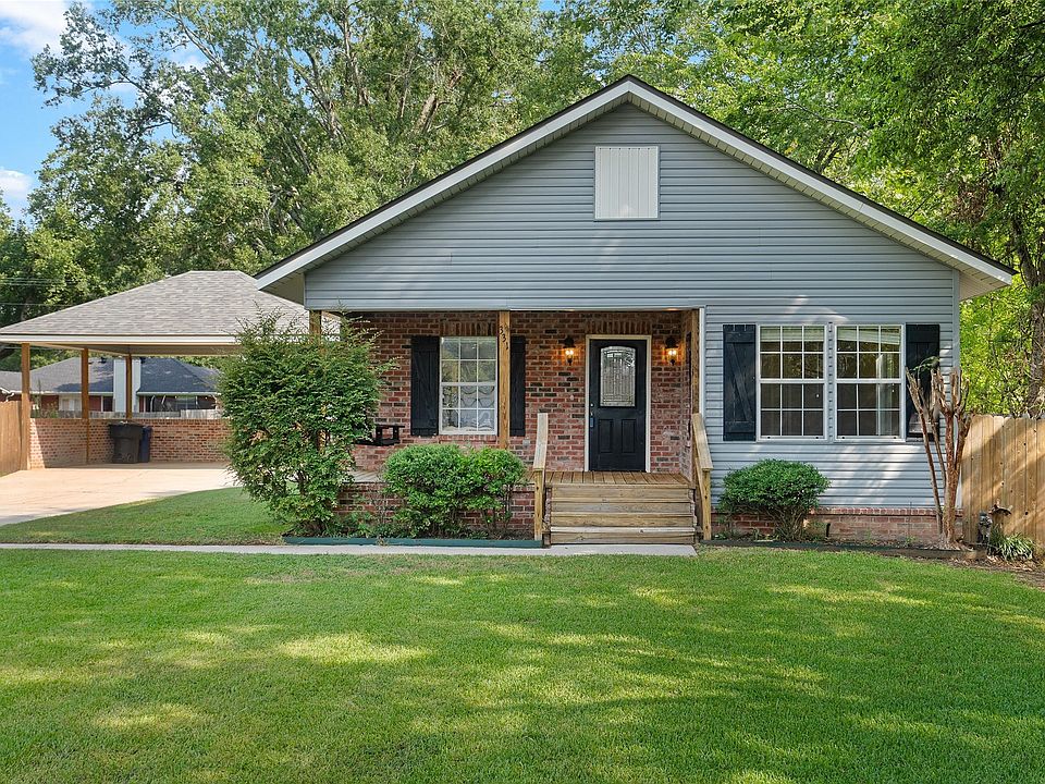Welcome to Ellerbe Woods Subdivision! This charming home offers an inviting front porch and a spacious open floor plan perfect for modern living. The large eat-in kitchen features a blend of stainless steel and black appliances, granite countertops, and plenty of storage — ideal for cooking and gathering. Enjoy a mix of ceramic tile, vinyl tile, and carpet throughout, along with ceiling fans for added comfort. The primary bedroom boasts an en suite bath complete with a relaxing jetted tub. With two additional bedrooms and another full bath, there's space for everyone. Step outside to a large, fenced backyard — perfect for entertaining guests or enjoying peaceful evenings. Don't miss your chance to call this lovely property home!