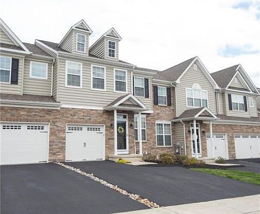 Looking for a quality-built, stylish home in Upper Macungie Parkland SD? This lovely townhome, located in the Hidden Meadows community, offers 3 bds, 2.5 baths, and a Foxtail floor plan w a striking open layout and soaring ceilings. Tasteful features incl gleaming hrdwd flrs, a gas FP in the 2-story family rm, abundant natural light filtering thru, an opulent powder rm, and access to a rear deck. The kitchen is a standout w 42" espresso-stained cabs, granite counters, SS apps, and gas cooking. Upstairs, the primary bdrm suite is spacious w 2 closets and a sumptuous bathrm w a soaking tub. Two add'l bdrms, a hall bath, and laundry area complete the 2nd flr living space. A built-in garage, wide driveway, and a close-by guest parking lot provide plenty of parking. Low maintenance living abounds w an HOA to take care of lawn, landscaping, and sidewalk snow removal. Minutes from the turnpike entrance and other thoroughfares: Rte 309 Rte 22 I 78, this location is commuter-friendly. Great buying opportunity!