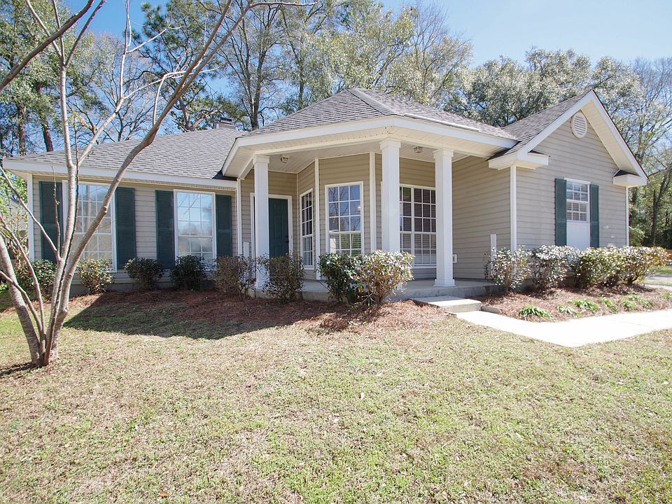 This cute home has been freshly painted throughout and is ready for immediate occupancy! The open floorplan and ample windows makes this a great place to call home. The master bedroom features an on-suite bath with long vanity, large soaker tub, and walk-in closet with custom shelving. The other two bedroom are located across the family room and share a hall bathroom. The kitchen has lots of cabinets and counter space, a pantry and includes all appliances even a refrigerator. The side entrance brings you into a large laundry room; washer and dryer to be included as well. Outside you can enjoy the wrap around front porch, ample party, privacy fenced backyard, and back covered patio. Owner is a licensed Realtor in the State of Alabama.