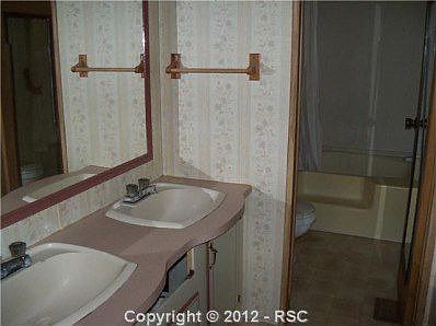Manufactured home on private 5 acres. Needs TLC. Electric cannot be turned on as it is not code per Teller County, Large open 24x19 open addition above the garage connecting to the entry of this house, which could easily be finished! Double sink in master bedroom. Nice full basement. The house sits back off of the road on a treed lot with plenty of room for parking! H/W will not apply if electric cannot be turned on. Well permits states 12GPM!