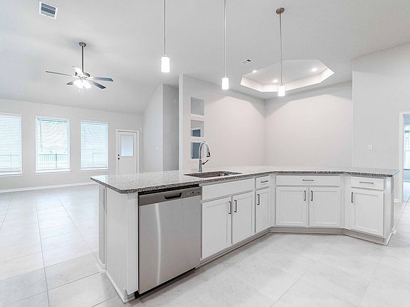 Boasting with optimal space, the Frost floor plan is ideal for any lifestyle. This beautiful home welcomes you to two bedrooms, each with walk-in closets, and a full jack-and-jill connected bathroom with the option of dual vanities. Across the way is your convenient downstairs powder bathroom, your walk-in utility room, and access to your two-car garage with an extra nook for storage inside. You can also turn this into a third full bathroom if you prefer. If you are needing just a little more space or enough space for a third vehicle, opt to transform the two-car into a two-and a half car or three-car garage. Down the hall is your secluded study room which you have the option of making into a fourth bedroom if you desire. Across the study is your large, open-concept kitchen that opens up to the family room and formal dining area - perfect for entertaining guests. Your kitchen showcases plenty of attractive features such as a sizable kitchen island, granite countertops with ample counterspace, industry-leading appliances, and an oversized pantry. Add an extra flair to your living room by including an optional fireplace. For those that love spending time outdoors, the Frost gives you the option to include a covered patio. When it is time to rest, head over to your luxurious, private master suite. Your master bedroom features a huge walk-in closet, while the master bathroom consists of dual separated vanities with cultured marble countertops, cabinetry that matches your...