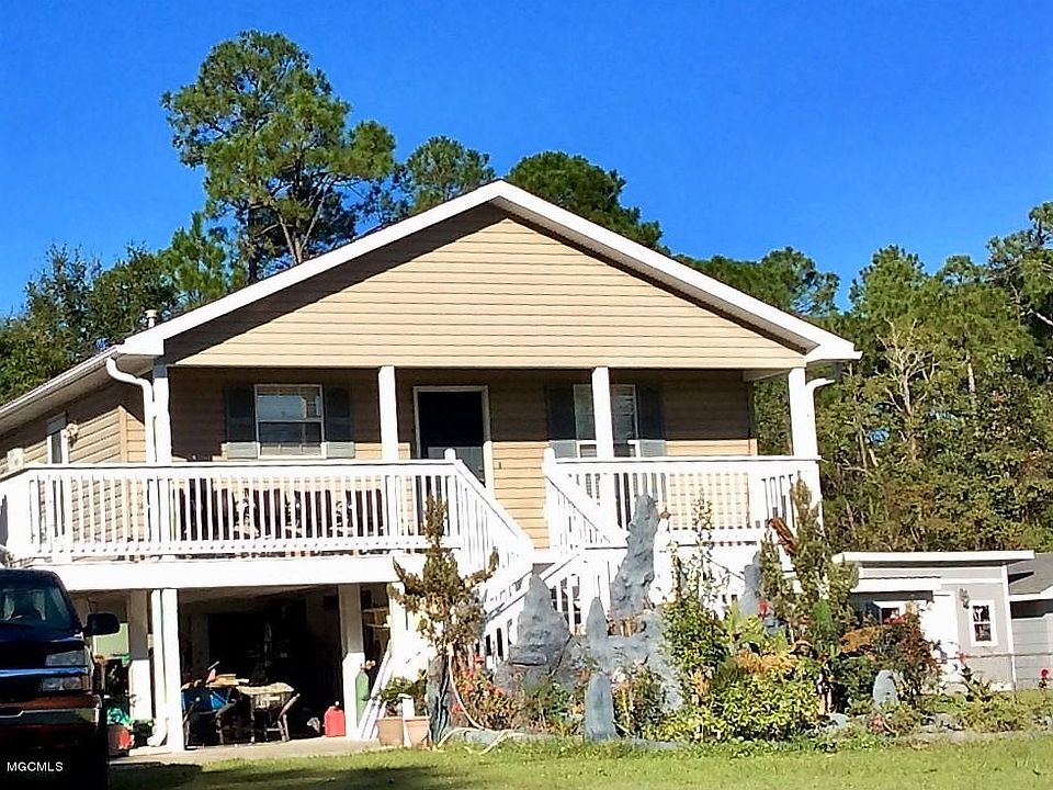 This cozy house sits elevated just minutes from the beach, Pirates Cove, boat launches, Pass Christian Harbor. Corner lot, 3 large roomy bedrooms, 2 full bath, and tons of storage rooms down stairs. Roof has 25 year warranty. Seller may pay some or all of closing for the right price offer. Large yard in back with separate doggy fence. Nice wrap around porch deck. Nice neighbors, nice appliances,large fridge, ALL appliances stay including washer and dryer. Nice big tiles in bathroom floor. House has never flooded, you can assume the FLOOD policy for only 300 a year. Very clean. Man Cave area under the home is HUGE with plenty of storage and 3rd bathroom. Could park boat under house too.