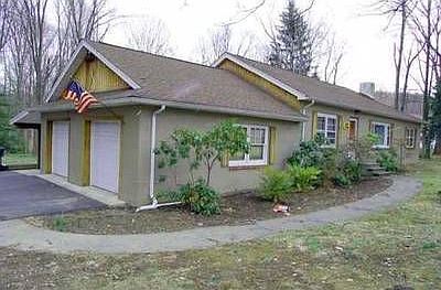 Price Reduced the N.Y.C. bus will stop to pick you up. Three bed ranch with full basement, 2 car garage, and carport. This is a fun place with a meandering stream and a gazebo for summer picnics. Eat-in kitchen seats 6. The fireplace in the living room adds to the ambiance of the property. There are 2 full baths and thee bedrooms and an office. The full basement is a handyman delight. Comes with woodworking equipment,yard mower and all appliances!