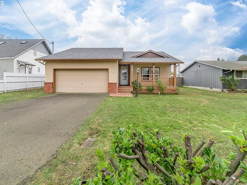 Open and inviting! Come home to real hardwood floors through the entry, hall, kitchen and dining. Indoor utility, great storage, ceiling fans in every room, and lots of natural light. Newer roof (2018), gas appliances, and gas heating. Back deck for entertaining, and great front porch for great curb appeal. RASTRA constructed walls making this home energy efficient and sustainable. Don't miss this affordable 3 bed, 2 bath, 2 car garage home that checks all the boxes!