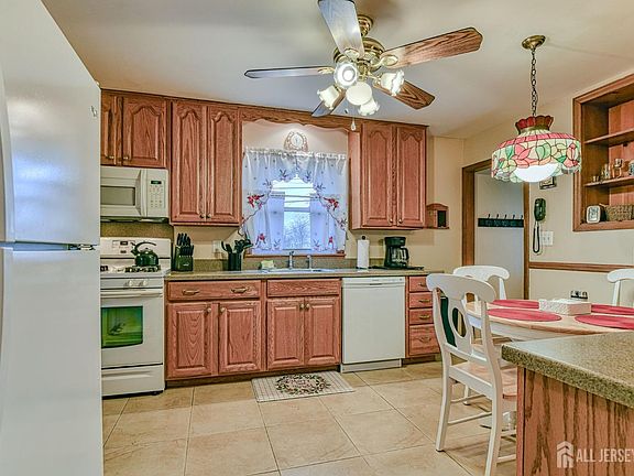 Nestled on sought-after Main Street Milltown, this well-maintained 3-bedroom, 1.5-bath ranch offers a perfect blend of comfort and convenience. With a spacious, fenced-in yard featuring an above-ground pool, this home is ideal for both relaxing and entertaining. The inviting living room, hallway, and all three bedrooms showcase hardwood floors, adding warmth and charm throughout. The updated eat-in kitchen, remodeled in 2010, is a bright and functional space with plenty of storage and counter space for your culinary needs. The finished basement expands the living area, offering a cozy electric fireplace and a convenient half bath. Additionally, the basement provides ample storage, including a cedar closet in the unfinished section, perfect for seasonal items and organization. This home boasts numerous recent upgrades, including a newer roof (2019), newer front windows (2021), storm doors (2022), and gutters (2023). A newly added covered front porch (2023) offers the perfect spot for enjoying the outdoors. The furnace was replaced in 2008, central air in 2017, and the water heater was upgraded in 2023 for added peace of mind. Located in a vibrant community with easy access to local amenities, parks, and schools, this home provides a fantastic opportunity for a family looking for a move-in ready home with thoughtful updates and plenty of character. Don't miss the chance to make this gem your own! This home is conveniently located near all major highways and transportation to NYC!