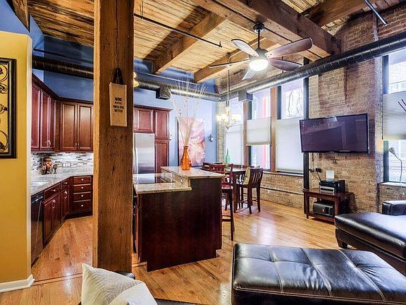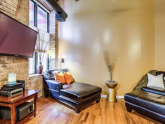 1 bed / 1.1 bath with 19 ft ceilings, hardwood throughout, in unit washer and dryer, stainless steel appliances, granite counter tops, flat screen TV mounts, new Hunter Douglas top down shades, master suite with custom built work area, new custom master closet, large soaker tub/shower with private commode and quiet close drawers. Walk to loop, parks, shopping, CTA, Greektown and more! Includes 1 garage space to rent and all utilities/cable/internet.