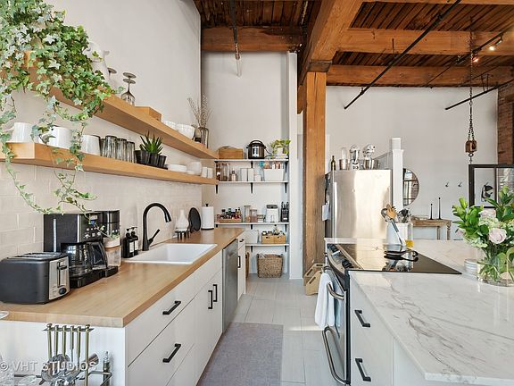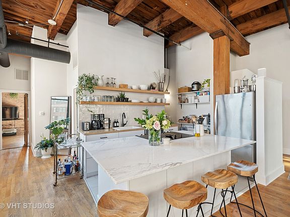 Recently remodeled One-bedroom loft in the prime West Loop! This unique space features a fully enclosed bedroom with 1.5 baths and a renovated Kitchen. Enjoy an abundance of natural light and industrial charm, highlighted by 14' ceilings, exposed brick, and ductwork. The lofted bedroom boasts a walk-in closet and ample storage throughout. Solid Oak hardwood floors enhance the space, while the exterior entry welcomes you with double doors into a generous living area, perfect for entertaining. The master suite faces southeast, offering plenty of windows and both Eastern and Southern exposure. Step out onto the huge balcony, ideal for a grill or seating area. The rooftop AC unit was replaced recently. Conveniently located only one block from the Blue Line, a 5-minute walk to Whole Foods and Mariano's, and in close proximity to Mary Bartelme Park with a dog park. Long-term parking is available right next door, providing added convenience to this already impressive loft in the heart of the West Loop.