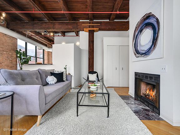 Welcome home to a stunning and meticulously updated one-bedroom loft in the heart of the vibrant West Loop! This spacious unit features 1.5 baths and boasts expansive windows that flood the space with natural light, a cozy fireplace, soaring 14-foot ceilings, and hardwood floors. Exposed brick walls, beautiful loft and thoughtfully designed layout contribute to the unit's undeniable charm and character. Perfect for both entertaining and cozy nights in, the generous living and dining area seamlessly transitions into the well-appointed kitchen. Equipped with an inviting breakfast bar enjoy Southern and Eastern exposure with captivating urban views. Incredible storage throughout the unit. The large corner bedroom provides a tranquil retreat and is complemented by an ensuite bathroom featuring dual vanities. An additional powder room, adorned with tasteful wallpaper, completes the unit. In-unit washer/dryer! Step outside to the great outdoor space. Completely private garage additional $30,000. Enjoy the convenience of living in the sought-after West Loop neighborhood, with easy access to the blue line, Mariano's, Whole Foods, renowned restaurants, shops, the picturesque Mary Bartelme Park / dog park and so much more!