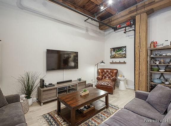 Step into this spacious 2 bed/2 bath unit that highlights both modern and industrial/loft design features - exposed brick accent walls, large windows and 13' ceilings with gorgeous timber beams/columns throughout. Large living room/dining room with engineered hardwood floors & plenty of space for everyday living and entertaining. The kitchen has been updated with gorgeous quartz countertops, glass tile backsplash, SS appliances, and island seating for 4. The first bathroom includes a roomy shower with full body sprayers. Enormous master bedroom with a walk-in closet, featuring an amazing organization system & extra storage space. Cozy ensuite master bath with whirlpool tub for soaking & relaxing. The second bedroom is generous in size with another walk-in closet and organization system. In-unit full size washer/dryer and additional storage space in laundry closet. Shared/common balcony with bonus courtyard and rooftop deck space in rear of the building. Ample storage throughout the unit, with extra storage area in the basement. Video monitored intercom/access (Butterfly app access) & secure building. Close to CTA train (1 block walk to Blue Line) & bus lines, and easy access to I-90/I-94 and I-290. Walking distance from U of I, West Loop and Greektown restaurants and shopping. Welcome home!