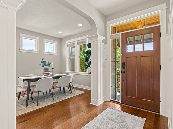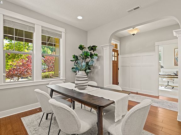 Polished and spacious contemporary craftsman with a lovely private fenced backyard and covered entertainer's patio plus so many new updates! Fall in love with where you live in this John's Landing beauty tucked back on a quiet street yet blocks to Willamette Park & miles of riverfront trails, dining, gourmet grocery, OHSU and Sellwood. Pride of ownership shows in this main level living oasis with high ceilings, rich hardwoods, gorgeous great room, new appliances including Wolf range and washer/dryer, and fresh interior paint, and Mt Hood views from select areas. Welcome friends with easy hosting options in the kitchen bar seating and outdoors on the covered grilling patio. Mt Hood views from select rooms! Main level bedroom with closet and nearby full bathroom, or remote office + 3 upper level bedrooms and plush family room. You won't have to do a thing thanks to the remodeled primary bathroom, new lighting/ceiling fans, and Simplisafe total home security system. A total gem primed and ready for new memories! [Home Energy Score = 9. HES Report at https://rpt.greenbuildingregistry.com/hes/OR10193466]