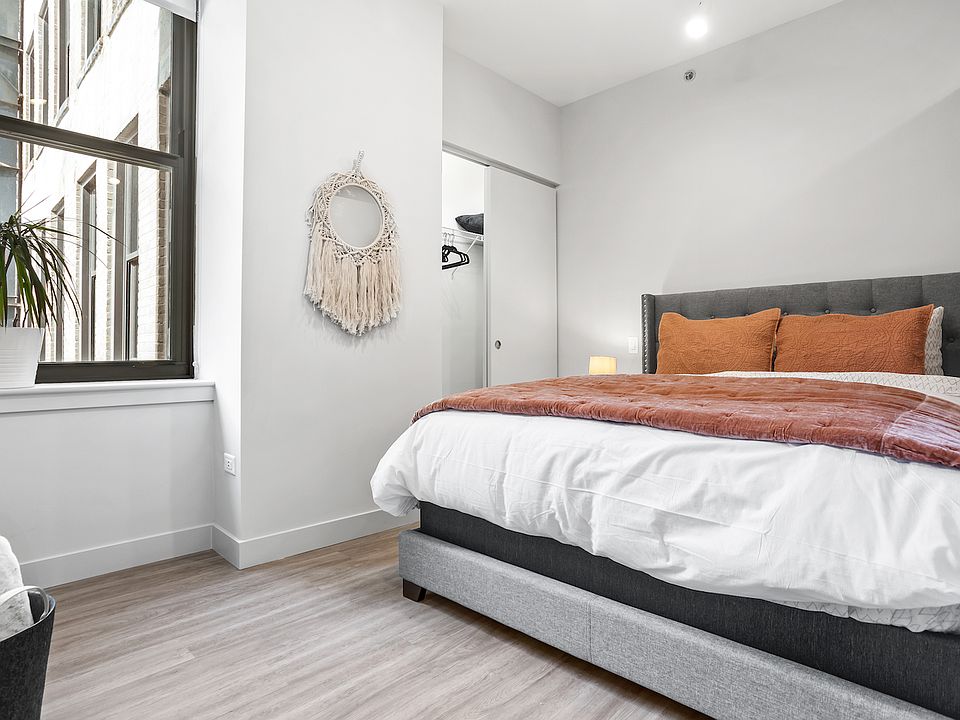 Residents enjoy a variety of upscale amenities, including a state-of-the-art fitness center, a beautifully landscaped courtyard, and a rooftop lounge showcasing stunning skyline views. Whether youre unwinding, working out, or hosting friends, the building offers spaces designed to complement your lifestyle.