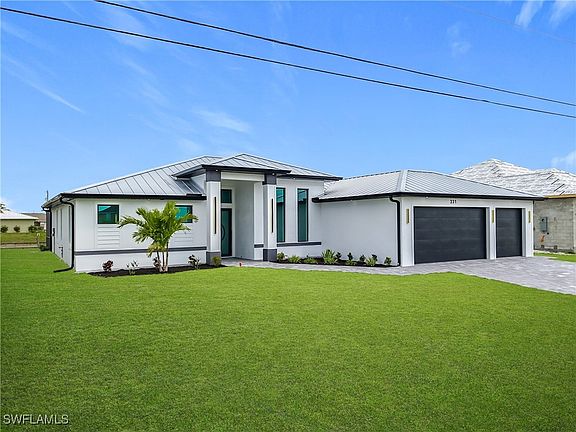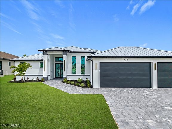 Welcome to 331 SW 21st St! This stunning new construction home is a custom built & seamlessly blends luxury, comfort, and cutting-edge technology. This property includes all hurricane impact windows and doors, ensuring your safety and peace of mind during stormy seasons. As you step inside, you'll be greeted by soaring ceilings: 12'4" in the living room, an impressive 13'4" in the dining room, and 9'4" in the bedrooms creating an open and airy atmosphere throughout. The smart home integration features a Ring Smart Home Doorbell along with pre-wired camera cable hookups, ready for your installation. Enjoy maximum energy efficiency with foam board insulation walls and spray insulation in the ceiling, garage and lanai giving you a cool and energy efficient home .The elegant and durable porcelain tile flooring spans the entire house, enhancing its modern aesthetic. The master suite is a true retreat, with sliding doors leading to the lanai and LED backlit, anti-fog mirrors in all bathrooms. The master bathroom has dual-vanity, soak-in tub, generously sized walk-in shower and walk-in closet as well. 5 walk-in closets in total. The kitchen is a chef’s delight, equipped with fingerprint-resistant stainless steel Samsung appliances, luxurious quartz countertops, and an oversized quartz kitchen island with a waterfall edge. The home is illuminated by upgraded, modern LED lighting and deluxe fans throughout. For outdoor cooking enthusiasts, the property has a modern beautiful built-in outdoor kitchen. The lanai features outdoor LED fans, providing comfort during warm evenings. The garage includes epoxy-coated floors, adding durability and a sleek finish. The full irrigation system ensures your garden remains lush and green with minimal effort. The luxurious pool area includes a pool heater, a saltwater system, a spa, and LED pool lights, along with an outdoor shower. Freshly laid grass and landscaping in the front and back of the home enhance its curb appeal. Outside the flood zone - on a freshwater canal with a seawall and dock.
