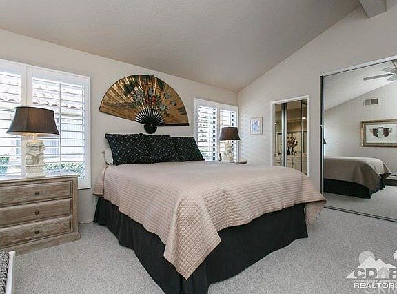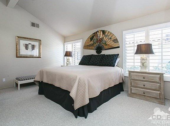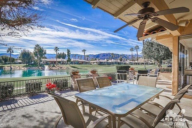 Enjoy gorgeous, panoramic SOUTHERN mountain, lake and fairway views from this unique 3000 plan. One of the best views in Monterrey Country Club. Extended and enclosed patio is perfect for enjoying the sun and entertaining. SPACIOUS living areas, updated kitchen with wall removed for an open, great room feel. Atrium has been converted to create additional office space to 3rd bedroom currently being used as den. Very modern, comfortable feel with view across living room through kitchen area. From patio has 180 degree view. 27 holes of golf, 18 tennis courts and 37 pools all just short walking distance from homes. The Monterrey Country Club is one of the most active in the desert.