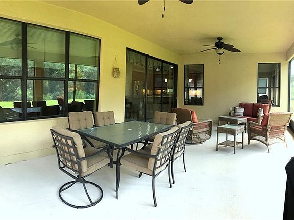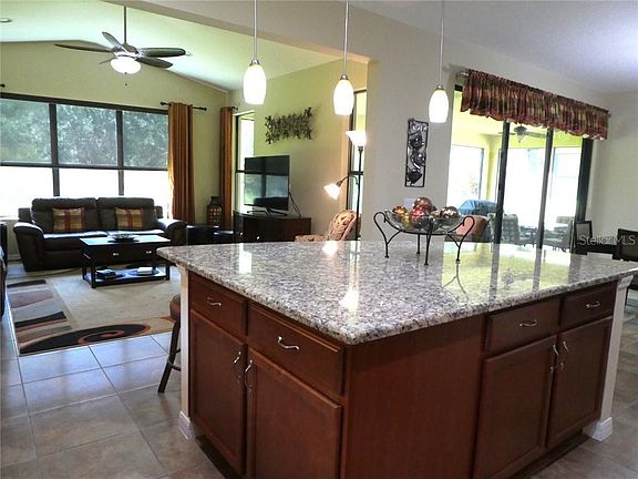IMMACULATE ST AUGUSTINE model on a VERY PRIVATE & PANORAMIC CONSERVATION lot in Valencia subdivision of Solivita. See full VIDEO of home at Tour 1. ENERGY EFFICIENT package with Icynene SPRAY FOAM in attic ceilings, sealed soffits, Tailored Foam in exterior cinder block walls & DUAL PANE windows with Low E gas. LANDSCAPE CURBING at entryway & around flower beds. SCREENED FRONT PORCH & LANAI. 8' front door & slider. 18" CERAMIC TILE in Great Room, Dining Room, Kitchen & bathrooms with carpet in both bedrooms & den. Kitchen boasts GRANITE counters, STAINLESS STEEL appliances, 42" UPPER cabinets with upper & lower crown molding and under mount lights, PANTRY and RECESSED & PENDANT lights. Master Bathroom features GRANITE DUAL RAISED VANITIES with 2 Sinks, a shower is very spacious with sitting bench and upgraded tile in the shower. SPACIOUS TWO car garage with room for Golf Cart or boat. UPGRADED LIGHT FIXTURES & ceiling FANS in Florida Room, Den, both bedrooms & lanai. FURNITURE is available as a package outside the sale of the home. This home shows like a model home. It is a NEWER home with very nice upgrades and a great conservation view.