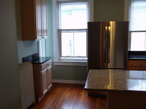 2 bedroom, 1.5 bath, large apartment on 1st floor with stainless steel appliances, granite countertops in kitchen and bath, walk in closets, kitchen pantry, updated bathroom, wood floors, fenced yard, off street parking, laundry in downtown Newport 1 block from Thames St, across from library and park. long term lease ( min of one year) tenant responsible for gas, elect, cable, water