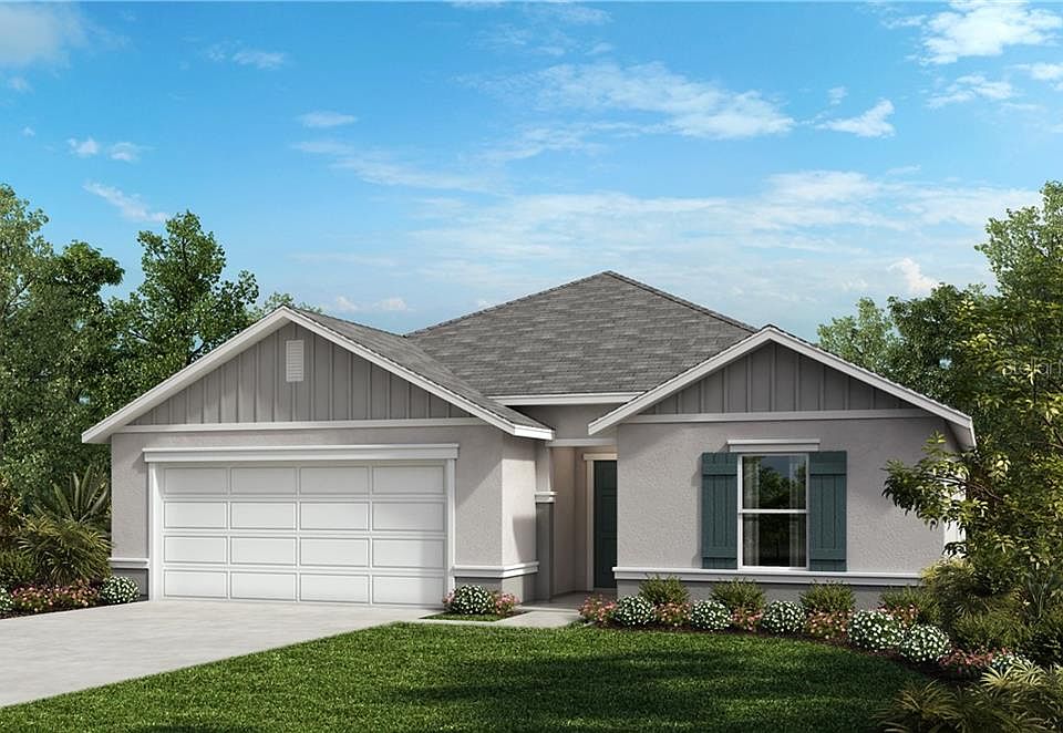Under Construction. This popular floorplan features an oversized-great room and a split bedroom layout for added privacy. The three secondary bedrooms each come complete with a sizeable closet and are in the front of the home along with a secondary bedroom and dedicated laundry room including a washer & dryer unit. Down the entry way, the great room showcases lofty volume ceilings giving the home a more luxurious feel and has sliding glass door access to the covered patio. The kitchen offers 42-in. upper cabinets in Cotton, Brazilian White granite countertops, a wet island and sleek Whirlpool® appliances including a wide side-by-side refrigerator. Situated in the rear of the home, the master suite includes an oversized walk-in closet and the connecting master bath boasts an enlarged walk-in shower with tile surround, a linen closet and an extended dual-sink vanity. This home also features upgraded Emser® tile flooring in the living and wet areas of the home and Shaw® neutral carpeting in the bedrooms.