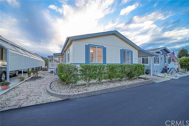 Situated on one of the largest lots in the community! Open floor plan with the living room opening to the dining area featuring laminate flooring and a built-in buffet. Plenty of windows bring in the natural light and a glass door from the dining area leads to the back deck, ideal for enjoying after dinner drinks or morning coffee overlooking the parklike setting. The kitchen accesses the dining area and the living room with a breakfast bar overlooking the kitchen from the living room. Two guest rooms share the 3/4 bath and the master bedroom features a master bath with separate soaking tub and shower enclosure. A walking path leads from the covered back deck out to the orchard with fruit trees and still more room for your gardening ideas. Just steps away from the club house with tennis courts, pool, spa, bocce ball, gym, billiard room, to name a few! And if that isn't enough, just a short drive to beaches, and world class wineries!