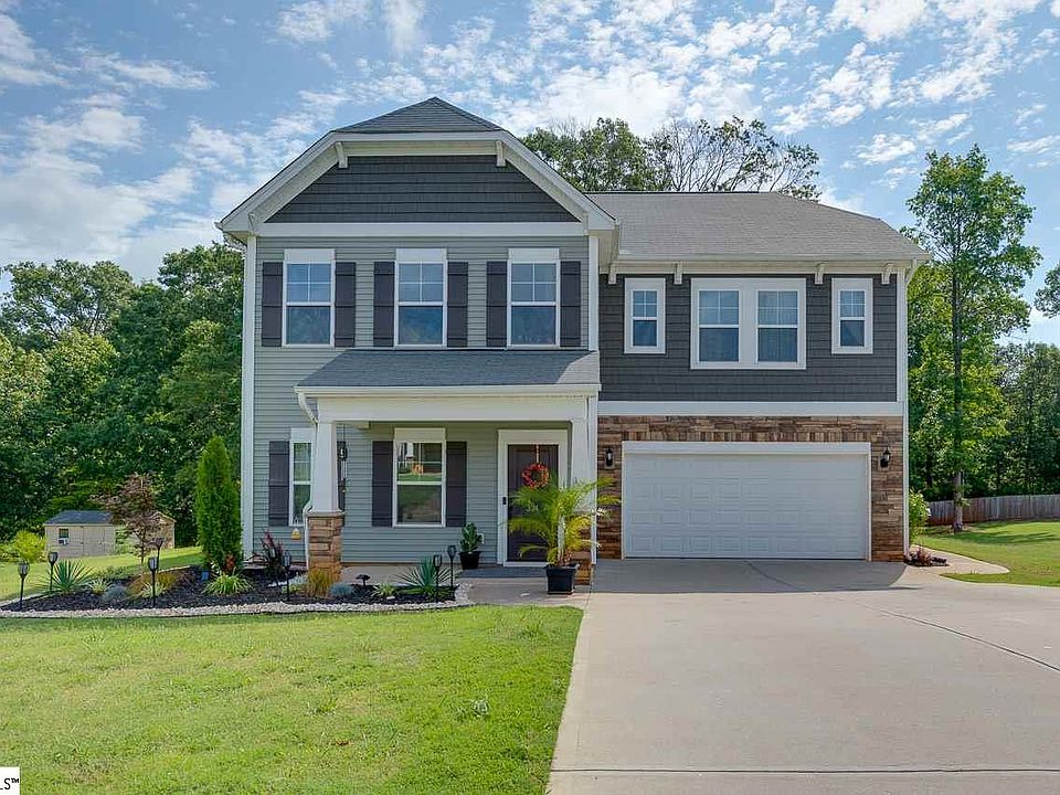 Stunning home in excellent, like-new, condition, convenient to both major shopping amenities and the peaceful Lake Cooley. This home sits on a spacious 0.57+/- acre lot, and welcomes visitors from the very first moment with its tidy landscaping and inviting front porch. As you enter the home, you step into the spacious foyer. Gorgeous, luxury vinyl plank flooring flows seamlessly underfoot, drawing your eye from the front door all the way through the main living spaces. To the left, you will find a roomy coat closet, and the half bath. As you proceed forward, you will find the Dining Room. The Dining Room is the perfect focal point for your favorite furniture and decor, with its dramatic coffered ceilings and arched entryway. The Open Concept Living Room, Kitchen, and Breakfast Room are the next stops on your tour. The Living room features a gas log fireplace with a Craftsman style mantle. It's easy to imagine yourself relaxing in front of the fireplace and watching a good movie or reading your favorite book. The Kitchen is this home's true showstopper. With sophisticated black granite countertops, subway tile backsplash, breakfast bar, stainless steel appliances, pantry, and crisp white cabinets, this space is perfect for entertaining or for casual dining. The breakfast room is also conveniently open to the Kitchen and features a stylish wicker light fixture. A cozy office space is tucked away across from the breakfast area and could be used as a flex room or mud room. All of the bedrooms are upstairs, as well as the laundry room, ensuring restful evenings. As you walk up the carpeted stairs, you will find the Master Suite to your right. The Master Bedroom is open and airy, with large windows and a generously sized walk-in closet. The Master Bathroom features a double sink vanity, with black granite countertops, and a tile walk-in shower. The other two bedrooms are on the opposite end of the hall and are each nicely sized and appointed. The hall bathroom features a full tub/shower combo and a quartz sink vanity. Let your imagination soar as you enter the Bonus Room. This area is perfect for a home theater, game room, craft room, library, music room, or office! This home also features many "smart" outlets and charging stations, making it energy efficient and convenient for charing your favorite devices. Be sure to conclude your tour by exploring the back yard, back porch, and patio. If you're looking for a new home with plenty of privacy and upgrades, then search no more! Don't miss out on your chance to turn this house into your home. Schedule your showing today.