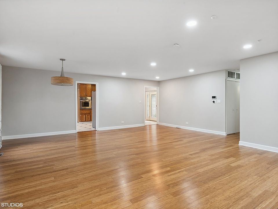 Upgraded and well-maintained 2050 sq. ft expanded ranch with 3 bedrooms and 2.5 bathrooms now available in desirable Buffalo Grove! Gracious foyer with excellent closet space welcomes you. Updated eat-in kitchen features stainless steel appliances, new electric cooktop, new dishwasher and sliders to the patio! The spacious living room, dining room and bedrooms all feature gleaming hardwood floors. Bedrooms are perfectly sized and boasts an en-suite primary bedroom retreat and updated hall bathroom. Follow the stunning porcelain tile around to the large and versatile office space rarely found in this floorplan. Next we find the newly re-designed guest half-bathroom with a stainless steel sink and a separate, full laundry room; another rare find in this special ranch home. Beautiful corner lot presents a very large fenced-in backyard with brick-paver patio and shed. Tons of space for a huge garden or fruit trees. Other features not to miss: tankless hot water heater, whole house water filter, new driveway 2019, R-49 attic insulation and more! Super location close to schools, shopping, dining, entertainment, Metra and Rt 53 highway. Buffalo Grove HS. Schedule your appointment today! Renter responsible for water, gas, electric. Owner will maintain lawn care. Last month's rent due at signing. Discuss pet deposit and fee, if necessary.