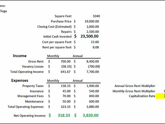 Can you say TURNKEY? This property has a long term tenant at $700 Per month. The rent is WAY LOW for a 3 Bedroom House, that's why we are letting this deal go at only 19k. We even factored in $2,500 for minor repairs on the house and it still has a 16% Cap Rate. Easily bring home over $300 per month in cash flow after ALL Expenses. Don't delay on this opportunity put this rental into your portfolio. As you increase the rent your profits will only go UP!