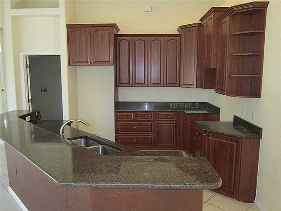 Perfection at its finest. Absolutely gorgeous 4 bedroom 2 bath home with over 2500 square feet under air. Custom built in 2006, the spacious home features a split floor plan with living room and family room, formal dining, large kitchen with custom cabinets, granite counter tops and large pantry. You'll love the kitchen nook with aquarium window, high volume ceilings and plenty of room for the entire family. Double doors to spacious master suite, complete with 2 walk-in closets, his and hers vanities, garden tub and roman shower. Eight foot sliders provide access to the pool area from the living room, family room, master suite and second bedroom. If you like to entertain, this enormous desired western exposure lanai is for you. Sparkling blue large free form pool with cascading spa which includes newer solar heating, additional sundeck and outdoor shower, all under one huge screen cage. No worries here, one year home warranty included in purchase.