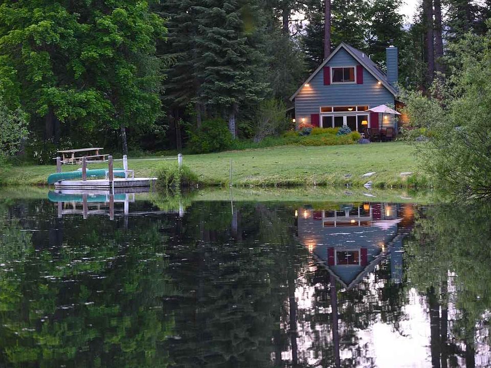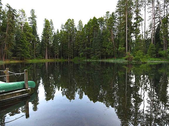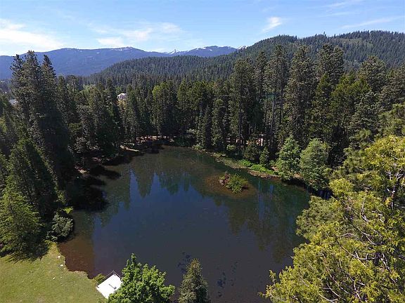This exceptional property offers a stunning cabin with a picturesque lake view. This finely crafted mountain cabin includes an open floor plan, custom wood features such as hand hewn beams in living and dining room, black walnut hardwood floors, cedar wainscoting throughout, fir trim around solid wood doors, transom wood windows and French doors opening to a paver patio with pond view. Other exceptional custom features include rock hearth and wood stove, special lighting, built in wood cabinets, tile bathroom and floors, skylights, and master bedroom with pond view. In addition, this property features elaborate landscaping, outdoor shower, aspen grove, lake flume, boat dock, multiple foot trails/bridges and fruit orchid with mature apple, pear, and cherry trees. Spring Creek meanders through this amazing treed parcel with a 2.5-acre trout lake. The gated paved driveway leads to a large pole structure for vehicles or equipment and storage shed. Expansive irrigation exits throughout the property and lawn areas. There are several optional building sites for a future or additional home on this spacious heavenly parcel.