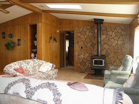 Salmon River Frontage! Immaculate home with 3 sided deck, part is enclosed, part is open and another is screened in! Incredible views of the mountains, Salmon River and expansive lawn from all sides! Gorgeous! This inviting home offers a perfect floor plan. The large living room with cozy wood stove is open to the kitchen and dining area with laminate flooring and vaulted ceilings with skylights. The kitchen features a breakfast bar, plenty of counter space and cabinetry. The master bedroom offers loads of closet space and bathroom with Jacuzzi tub. The bedrooms both have bay windows and the main bathroom has double sinks and walk-in shower. This lovely manufactured home sits on 1/3 of an acre with fenced garden, storage shed, 2-car garage with insulated workshop and RV carport. A must see!