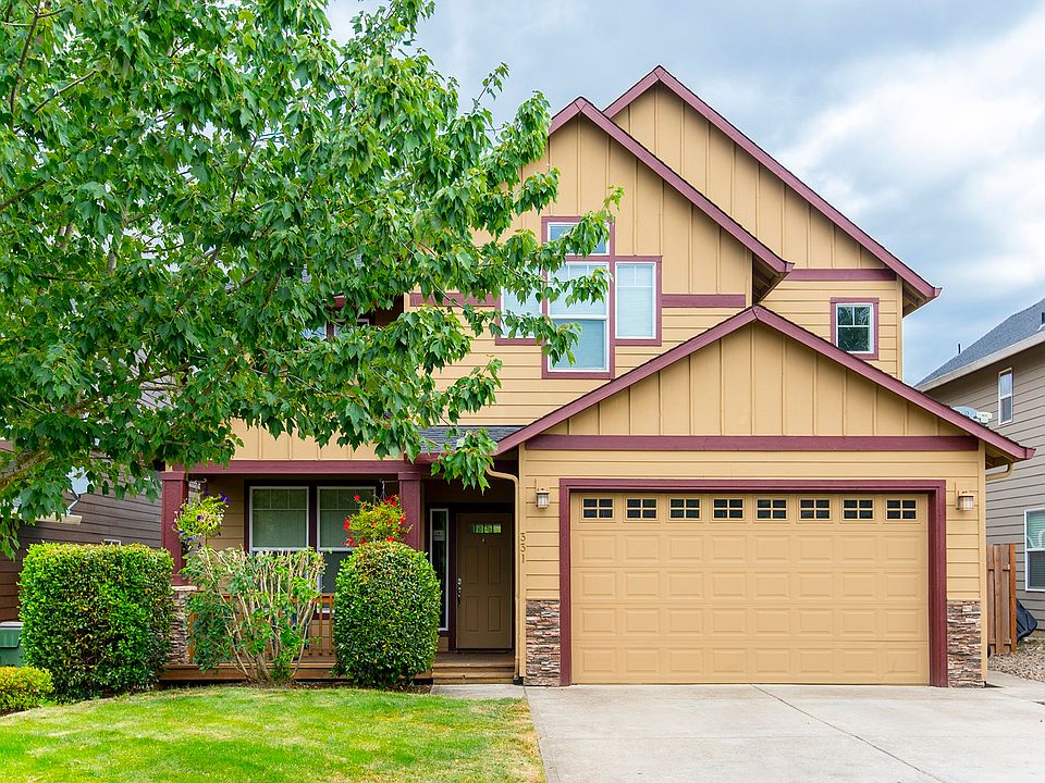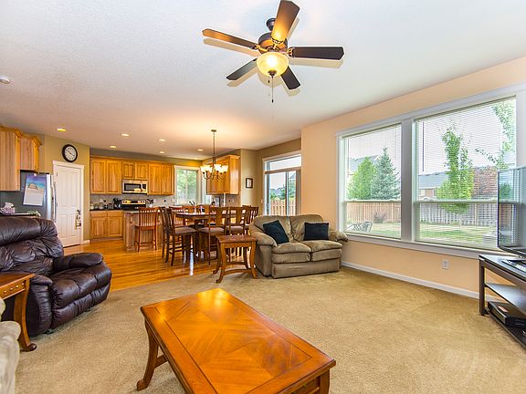 Spacious floor plan with large great room. Open kitchen with granite counter tops, island, pantry and stainless appliances. Three large bedrooms and vaulted bonus/media room upstairs. Optional room on the main floor. Master bedroom includes bath with dual vanities, walk-in closet. Convenient upstairs utility room. Hardwood floors on the main. Carpet and tile floors upstairs. Additional shop area in garage. Sprinkler system and large fenced backyard.