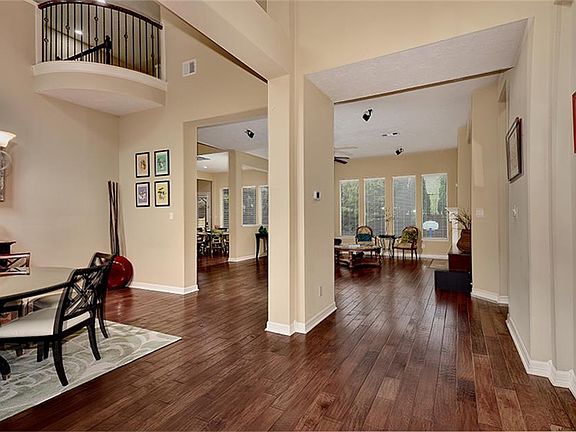NO FLOODING IN HARVEY! Outstanding Trendmaker home on a beautifully manicured lot in Creekside! Open & bright w/neutral paint palette, hardwd & tile flrs, crown moulding & lovely finishes. Islnd kitch w/granite counters, SS appls & bkfst bar opens to bkfst rm & den w/gas FP & wall of windows;study w/French doors;guest bdrm dwn;2 bdrms, gamerm & huge mster retreat up;bonus rm could be 5th bdrm;fenced yard w/cvrd patio, pool & spa surrounded by mature trees. Oversized garage w/epoxy flr & storage!