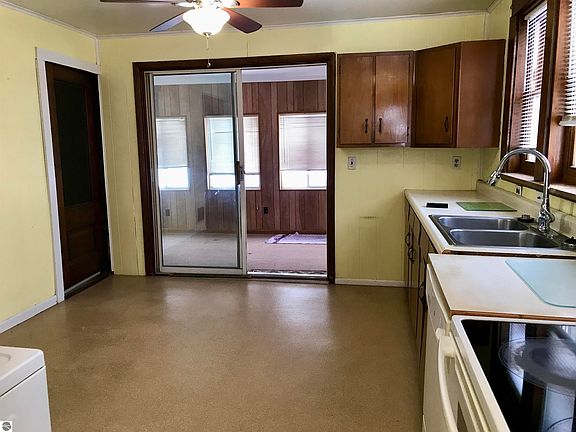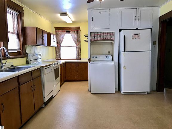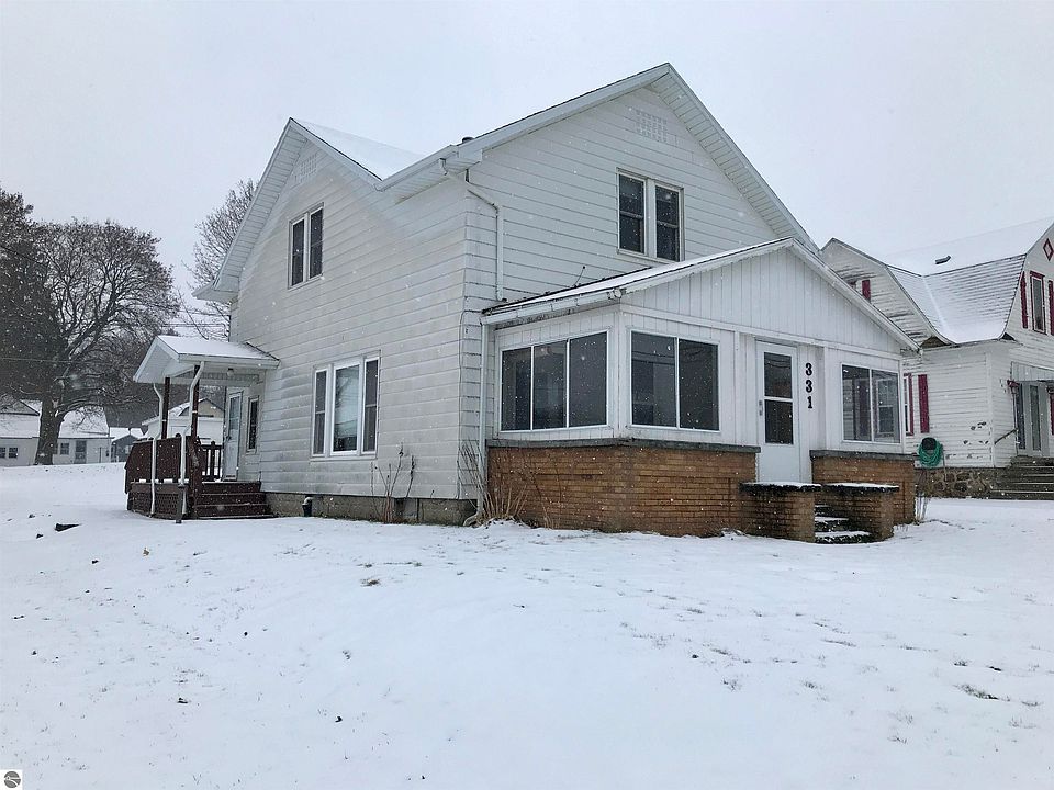 Historic home in the Village of Remus. Plenty of original woodwork, paneling, doors, and wood floors. Double lot right across from the Post Office. Close to great food options, shopping, schools, groceries, banks, bowling alley, health food store, etc. All within walking distance. There is also a church at the end of Poe/Church Streets just a block away. Home in need of updating but good bones. Property also has a 1/2 address upstairs with separate entrance, electric/gas bills (both Consumers) and a kitchen area, could be turned into an apartment/rental space to help with the mortgage. Historic charm, large living room with bookshelves, entry room and porch for added square footage. Kitchen contains washer, dryer on adjoining porch. One bedroom on main floor, 3 bedrooms upper level with surprisingly large closets for the era of the home. Basement furnace is 2 years old, water softener owned, workbench, and plenty of canning shelves. Front porch 21x16.5. Large 25x30 detached garage with two single doors, and plenty of storage.