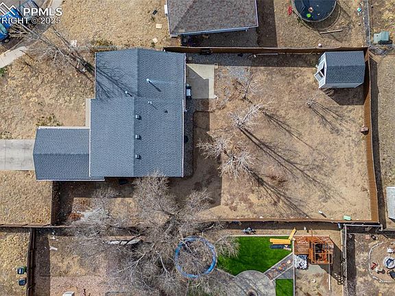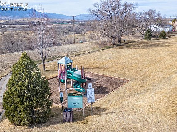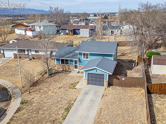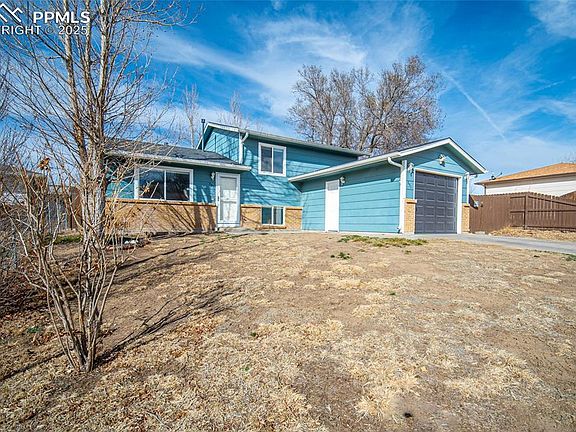 Nestled in the heart of Colorado living, this beautifully updated tri-level home offers the perfect blend of comfort and outdoor adventure. Step inside to an open floor plan, featuring new wood laminate flooring throughout most of the main and upper levels. The eat-in kitchen, complete with all appliances, is ideal for gathering after a day of exploring the nearby trails. Upstairs, the owner's suite boasts wood laminate flooring, a walk-in closet, and a remodeled attached bathroom. The lower level offers a spacious family room—perfect for cozy movie nights or entertaining—along with a large bedroom and full bath. The enormous fenced backyard features a patio, storage shed, and plenty of room for gardening, playing, or just soaking in the Front Range Mountains. Conley Park is conveniently across the street, and this home rests on a cul-de-sac lot. Prime location close to top-rated schools, shopping, dining, and easy access to I-25 & Fort Carson, this home is the perfect place to settle in and enjoy the best of Colorado living!