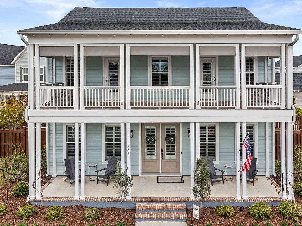 Welcome to 331 Watergrass Street, located in the prestigious Brighton Park Village community in Nexton! This Ashton Woods Sangaree home boasts a highly sought-after floor plan that perfectly complements the coastal style of the neighborhood. Situated on a corner lot, the home showcases Charleston-style double porches, adding endless charm and elegance. Upon entering, you'll be greeted by spacious 10-foot ceilings and extra-tall doors creating a warm, welcoming space.On the first floor is a light-filled home office with stylish French doors, a convenient half bath, a formal dining room adorned with exquisite trim work, and a stunning bright kitchen equipped with ample cabinet space and a butler's pantry. Ideal for entertaining, the cozy living room boasts three sets of unique double doors that seamlessly blend indoor and outdoor spaces. Adjacent to the living room is a perfectly positioned morning room, offering a tranquil retreat. Step outside onto the large tiled screened porch, leading to an additional 400 sq ft of outdoor living space! Enjoy the views under a pergola, providing endless opportunities for outdoor enjoyment. Upstairs, you'll discover two spacious guest bedrooms, each with a full attached bathroom, and a luxurious master suite. The master suite features a bright sitting room, ideal for unwinding with a hot cup of coffee or a good book. The upgraded bathroom offers spa like comfort with its light and neutral colors. Experience the epitome of community living in the nation's #1 master-planned community, Nexton, offering a diverse array of entertainment opportunities, events, and resort-style amenities. From resort-style pools and tennis courts to miles of walkable trails and a gym, Nexton provides a vibrant lifestyle centered around outdoor living!