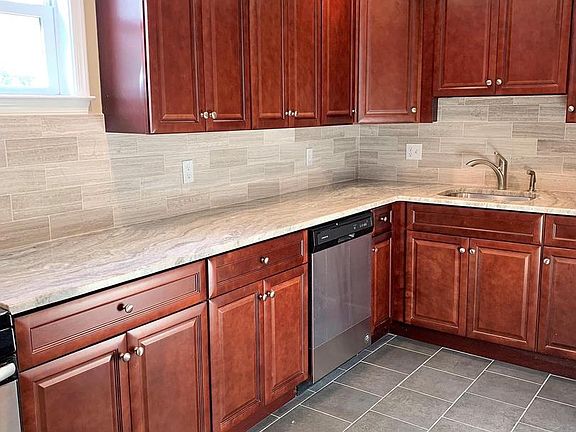 Stunning Brick end row home remodeled with modern luxury. The first-floor features new finished oak hardwood flooring and plenty of natural light. Beautiful all new kitchen that includes granite counter tops, brand new cabinets, stainless steel appliances, and new tile backsplash & flooring. Second Floor presents a fully remodeled Main Bathroom with tile tub surround, Master Bedroom with walk in closet, & 2 other bedrooms. Basement has a ~ bath, walk out to back driveway, laundry area, newer furnace and hot water heater, and an ample amount of space for storage. The exterior features, new vinyl windows throughout, a covered front patio, potential enclosed parking, additional private parking on the side and the rear. Great Location, and close to public transportation.