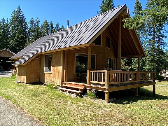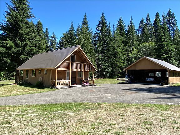 Come to the Heart of the Cascades. Lovely Cabin Home in Goat Peak Ranches. Sunny Level 5.05 ac. Landscaped yard, with 2 detached garages (800 SF & 1008 SF), each with double car or more area for equipment and RV parking as well. 1 bedroom 1 bath with large loft plus area for bonus room/den/office. Mature trees, includes well manicured surrounding lawns and creek on property. Paths leading to west boundary line adjoining Forest Service land and Bonneville Power land. Snowmobile or use ATV from your property to roads and groomed trails. Fire pit, 2 decks. Close to town ,restaurants, recreation, golf courses and Suncadia Resort. Come join the mountain living with much more. Call for an appointment today.