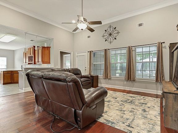 The living area features hardwood floors that continue into the dining room and the owner's suite.