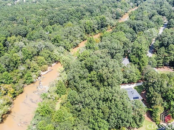 Beautiful brick home on an acre of land leading to our waterfront property on the Middle Oconee River, 3,500 square feet plus a fully finished basement. The main level features a large master bedroom, attractive bamboo flooring throughout, and a spacious great room with floor-to ceiling windows overlooking a wooded area. The recently renovated kitchen includes ceramic flooring, quartz countertops, and an eating area with a large picture window. The upstairs has a second master bedroom and two large guest bedrooms with an additional bathroom. The walkout basement, with walls lined with built-in shelving, a fifth large bedroom, and a french door leading to a patio, provides ample space for living, entertaining, exercise, office space, and storage. Recent improvements include new interior and exterior light fixtures, new shades and blinds, solar panels, and, in 2023, new vinyl replacement windows throughout.