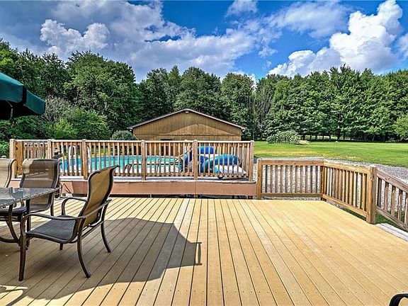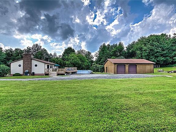 WOW! Acreage & Privacy! This property offers so much! With a convenient location, plenty of living space and the outdoor paradise, this home has all you need. This 3 bedroom 2 full bath RANCH home has only had one owner. Enjoy the open family room with wood fireplace. Plenty of space for cooking with your eat in kitchen and separate dining room. The master bedroom offers its own private full bath. The home is complimented by an above ground gated pool and large composite deck. The full unfinished basement offers multiple options for additional living space or any others creative ideas you may have. The detached garage offers plenty of parking or workshop space. The property is on 3 separate lots that total 2.25 acres. The home sits on the far left lot. The property goes to the back row of trees and to the right of the home to the decorative grassy area. Owner uses oil and electric heat pump depending on the temperature. You're only a few minutes off of 79. Stop by and see it.