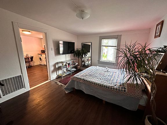A cute, two-room duplex unit surrounded by shared gardens, in a fabulous yet quiet location. Close to Root Down, Avanti, Happy Camper but in a quiet secluded spot away from the street. Home is part of a cool, artsy little "compound" with one house, plus a small duplex There is a private back patio, and a nice shared back yard with gas grill, outdoor dining tables. Lots of privacy. Building originally built as a store with a storefront in 1926. Has two rooms including living/BR, & kitchen/dining. Bath has tub. Modern kitchen has integrated Bosch Washer and Drier. The home's main rooms are the living/sleeping room which is 13'-6" x 11', and the kitchen/eating room which is 13'x11'. Living/sleeping room has a smart TV attached to the wall. Off street parking space included in rent. One Year Lease. Tenant pays gas and electric and internet. Landlord pays for trash, water, wastewater, storm sewer. Excellent references and background check required.