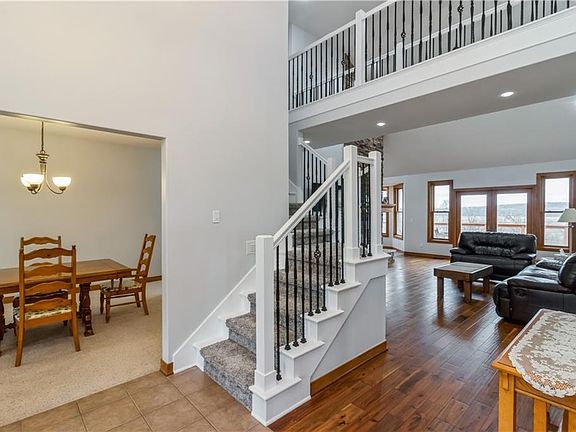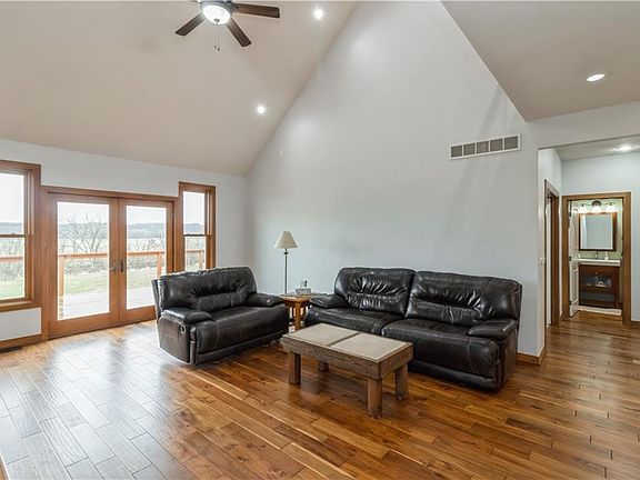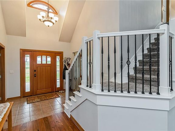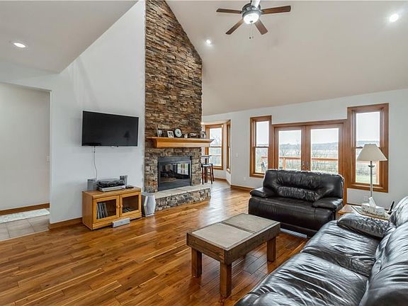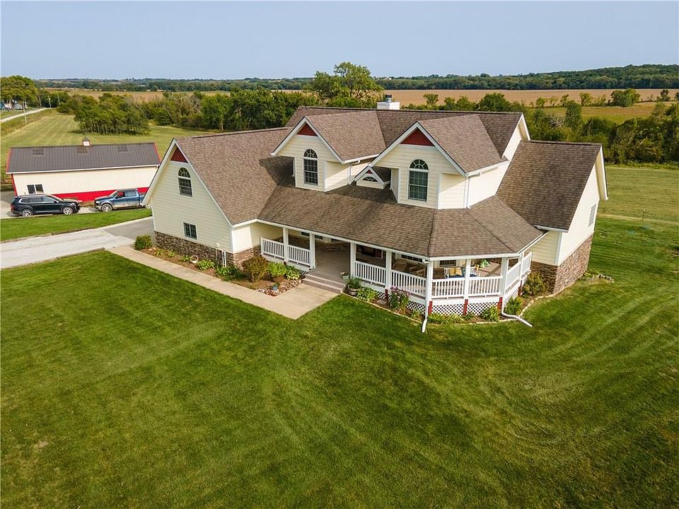 Gorgeous story & a 1/2 home situated on over 11 acres m/l right off of a hard surface road. This is such a desired location w/a short commute to anywhere in DSM. This home features a beautiful covered front porch that you will enjoy. As you walk in, you will fall in love w/the vaulted ceiling & a view of the 2nd level walkway. The spacious LR has views of the countryside & a see-through fireplace that you get to enjoy from the kitchen. The kitchen features a lg center island w/ cooktop, wall oven, a desk & wet bar. The master suite & bath is on the main level featuring the same views as the LR w/a soaking tub & tile shower. Other rooms include another bdrm/office, DR & laundry/mudroom. Head upstairs to 2 addt'l bedrooms each w/ their own bath & a lg bonus room. The lower level provides future finish w/ a walkout to a patio. Other features include 2x6 walls, geothermal & a 30x40 outbuilding with fenced pasture for a small hobby farm. A beautiful acreage you do not want to miss out on!