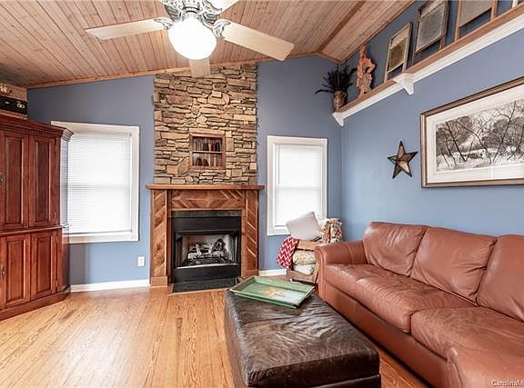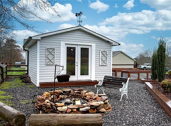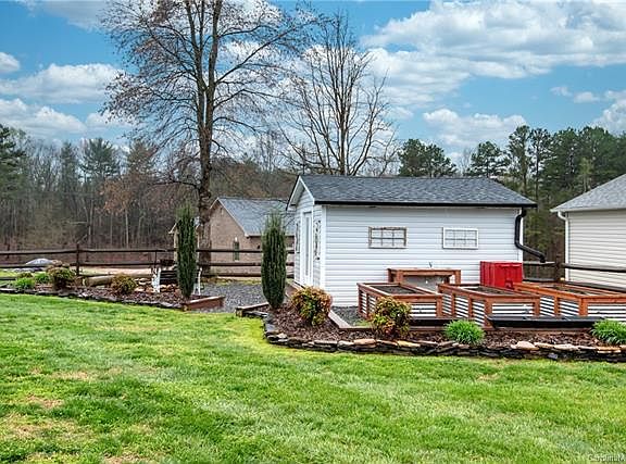 This is a charming, one-level ranch with 3 bedrooms and 2 full baths. It has a level, half acre lot with the sides and backyard being fenced. Living room has a vaulted ceiling with a fireplace with a handcrafted mantle and rock feature with gas logs. The master bedroom has vaulted ceiling and a hand crafted rock wall feature. Shiplap accent wall visible outside of the main bathroom. Family room/bonus room is ready for your workout area or media room. Kitchen has new fridge, microwave, and dishwasher. New hot water heater. New windows. Pull down attic access allows for additional storage. Well maintained one-level living is ready for you. Property includes a detached 12x15 building with electricity. Outdoors, a back deck overlooks the side and back yard. Fire pit near the outbuilding. A gardener's sink is ready for you to hook up. Raised gardening beds await you. Conveniently located.