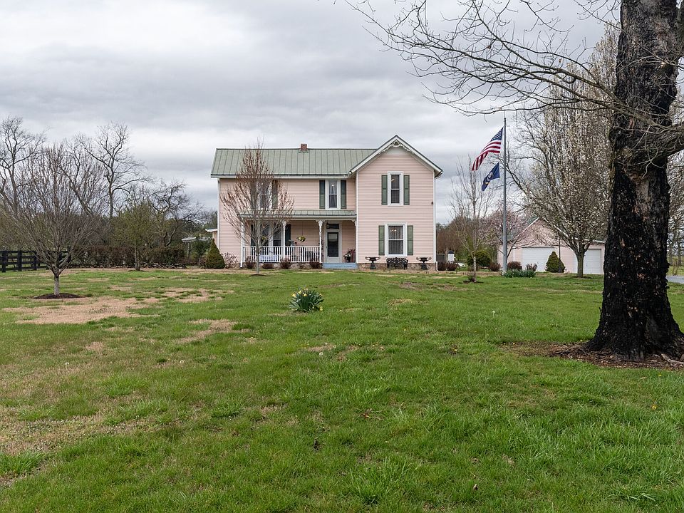 Beautifully updated 123-year-old farmhouse sitting on 20 acres. There are two creeks running through the property and a spring fed pond. The farm has a barn, haybarn, two garages with parking and storage & two carports for additional parking. Owners run 20 head of cattle on the property. There are thornless blackberries, peach, plum, apple and pecan trees growing on the property. When you step onto the covered front porch you will notice the detail of the Eastlake front door with ornate twist bell. Stepping into the foyer you will be greeted by a winding staircase, beautiful chandeliers, transom windows & 10 foot ceilings.