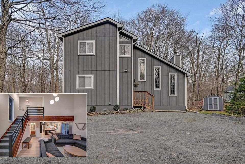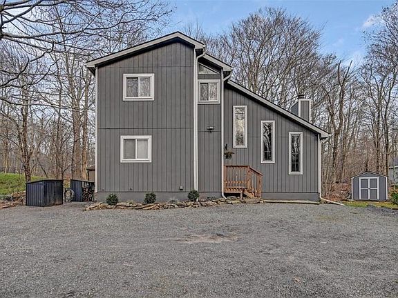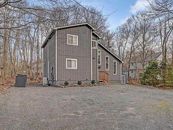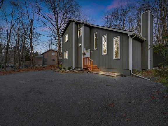 BEAUTIFULLY REMODELED & METICULOUSLY MAINTAINED INSIDE & OUT! Welcome to NORWOOD HOUSE, a delightful 3BD/2BTH Contemporary gem situated on 0.53 tree-lined acres in STR-friendly and amenity-filled Pocono Farms Country Club! No detail spared in updating this deserving home. Features include soaring cathedral ceilings with custom paneled wood and exposed beams, new flooring, paint, molding, trim, modern flat-panel doors, lighting & hardware throughout! The Kitchen has new soft-close cabinets with a butcherblock countertop, tile backsplash, floating shelves and new stainless appliances, while the 2 full baths boast new vanities and custom subway tile surrounds with glass doors! Each Bedroom is spacious and inviting and the Living Room includes a wood fireplace with brick surround! New 2nd flr. Laundry, efficient mini-split HVAC units & an EV charger too! FURNITURE/HOT TUB NEGOTIABLE! Minutes to community amenities, major roads & local attractions! SEE OUR COMPLETE LIST OF IMPROVEMENTS! CALL TODAY!