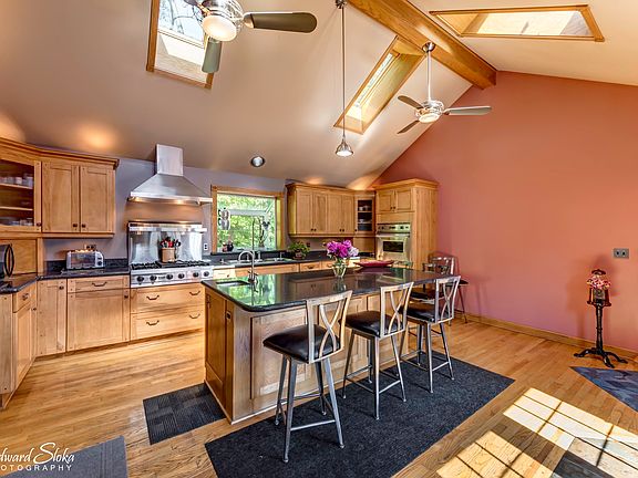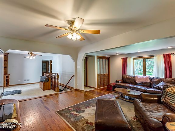 Conveniently located unique piece of property with a ranch home and full basement partially finished. The huge barn with offices on the property along with all the parking make this a great place to have all the toys you ever wanted. The offices need some work. It has a large loft as well. An entertainers dream kitchen with a fireplace and plenty of room for a table. Breakfast bar fits 6. Hardwood in kitchen, living room. 3 bedrooms on main level. Master bath is unique that needs your finishing touches but user friendly as is. One bedroom in lower level plus family room and a full bath. Lots of storage in the unfinished part. Outside access via a "Dorthy" door. Loads of perennials that make this property so colorful. Total of about 1.5 acres. 2 PIN numbers. One is 1 acre and one that is a half ac. See this unique home today. Owner ready to move.
