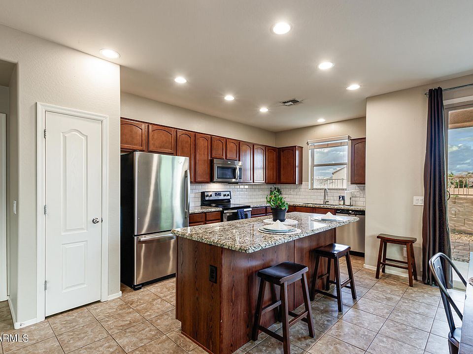 The kitchen is a chef's delight with an oversized island, granite countertops, a stylish subway tile backsplash, and a picturesque window over the sink, allowing natural light to flood the space. It's not just a kitchen; it's a place where culinary aspirations meet elegant design.