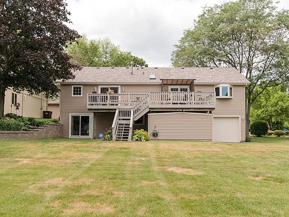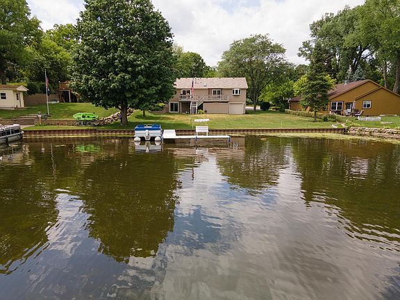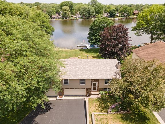 Almost 100 feet frontage on Island Lake you will find this well maintained home with exceptional views, huge garage and storage spaces, sea wall and pier plus huge entertainment sized deck, complete with gas grill and overlooking the lake. Primary bedroom is HUGE with 100 sq. ft. of closet space and access to deck. 3 car garage features professionally painted slip resistant flooring and is deep enough for workbench. Tucked under the deck is a 225 sq. ft. additional storage shed with overhead access door Elevator makes it easy to access upper level to lower level. While this is a "year 'round" home, it makes for an affordable vacation home for those looking for a tranquil waterfront house