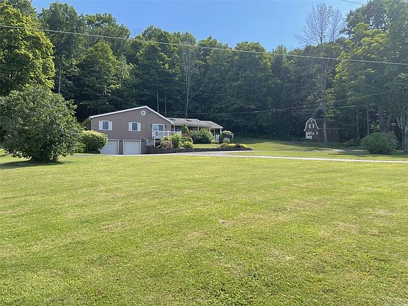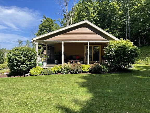 SMILE YOU'VE FOUND IT! This very attractive home has a lot to offer you and your family. Situated on 3.48 beautiful acres with superb curb appeal featured by a circular drive and an inviting wrap around front porch creating the perfect place for entertaining in the summertime! An open flowing floorplan with mid-century design and new flooring. Spacious rooms, custom skylights, track lighting, and a cozy fireplace stove. The maple kitchen opens to a light & bright airy space with abundant windows & natural lighting. Large bedrooms with the primary bedroom including a beautiful wardrobe closet, a main floor laundry, an oversized two car garage, and workshop space. Newer washer/dryer set. There is also a two level gambrel style mini barn for outdoor equipment and extra storage. Close to Jackson Park. Easy distance to town, enjoy the peaceful quiet country life! Located in Susquehanna Valley School District. Nothing to do but move-in!