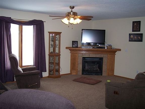 Well maintained ranch with beautiful valley view! Great room with newer carpeting, gas fireplace of which present owners added blower and remote thermostat. Master bedroom with walk-in closet and bath. Oak kitchen with an abundance of cabinets, large center island with raised eating bar, ceramic tile flooring. Front room is ideal for sitting area, computer room or formal dining. Lower level partially finished with large bedroom with egress window and nice 3/4 bath. Large walk-in pantry closet and lots of storage. Seller will have the remianing part of the lower level sheetrocked, trimmed out and painted at a price of $224,900. Nice three stall garage measures 32x30. Approx. 20 ton of rock and new landscaping the summer of 2009. (there is a small portion on the SE corner still needing rock) Seller offering Buyer a $500.00 allowance for a new stove. Seller just purchased the stainless unit. Included: refrigerator, microwave, dishwasher, window treatments except valance in baby's room, shelving in garage, shelving in basement, 3 bar stools. Not included: stove/oven, valance in baby's room.