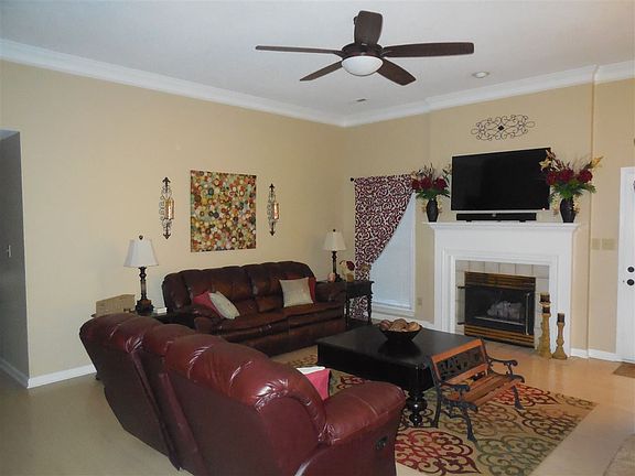 - LIVING ROOM DESC: Fireplace, Crown Mold, Laminate Floor, Ceiling Fan, 10? + Ceiling