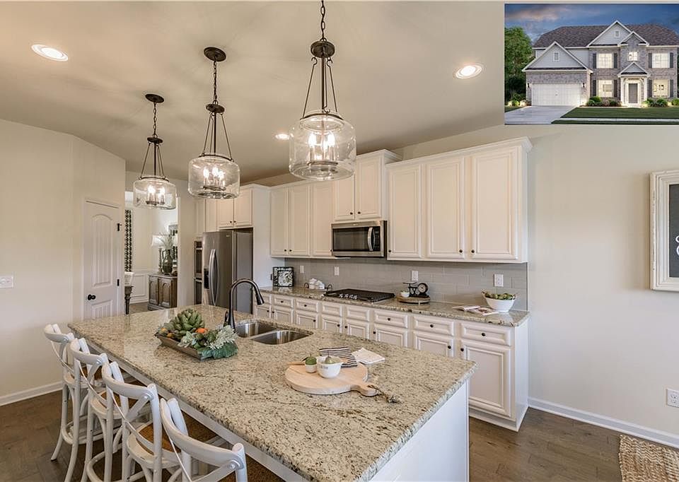 - Kitchen Features: Breakfast Bar, Cabinets Stain, Eat-in Kitchen, View to Family Room, Stone Counters, Kitchen Island, Pantry Walk-In
