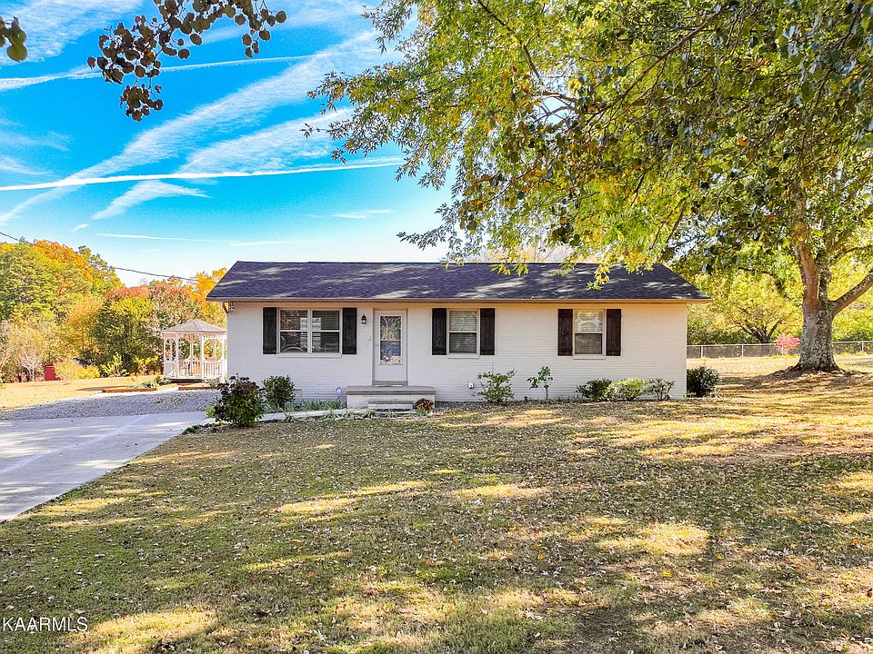 If you are looking for the perfect balance of country and city life then look no further! Surrounded by bucolic fields with beautiful views of the Smokies from the backyard, this Freshly Updated 3 Bedroom Rancher on 1.1 acres offers so much country serenity, yet is convenient to Pellissippi Parkway, downtown Maryville, and Knoxville. Set back from the road, your arrival is met with a long driveway perfect for RV or camper parking. Prepare to be impressed when you enter this well presented home. Shiplap accents, wood beams and gorgeous rustic-look floors are a subtle reminder of the home's sophisticated farmhouse influence, but all become a background to the many windows that frame out scenic field and mountain vistas. The warmth of a living room fireplace with wood slab mantle greets you as you enter, followed by the vision of the gorgeous updated kitchen designed with white shaker cabinets, custom backsplash, apron-front sink, new stove with custom hood, and large center island. A laundry closet with new washer/dryer is conveniently located off of the kitchen. Down the hall, three spacious bedrooms are easily accessible to the full bath with white tilework and contemporary vanity. Beyond the home's walls awaits the equally magical grounds complete with new gazebo, perfect for relaxing to the sights of the ever-changing mountain views. The finished workshop is a perfect she-shed or man cave retreat complete with electric. Easycare living is offered through the many updates including new roof, plumbing, and pumped septic. ADT alarm system installed needs setup. Make this enchanting mountain view farmhouse your very own, call today to set up your private showing! Square footage estimated. Buyer to verify all information.
